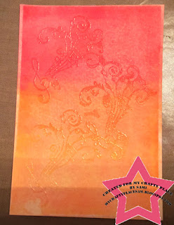 This was the technique behind yesterday's card. It's simple a bunch of stamps stamped in random order in a lot of different orange colors! You can do it this with any stamp or any colors!